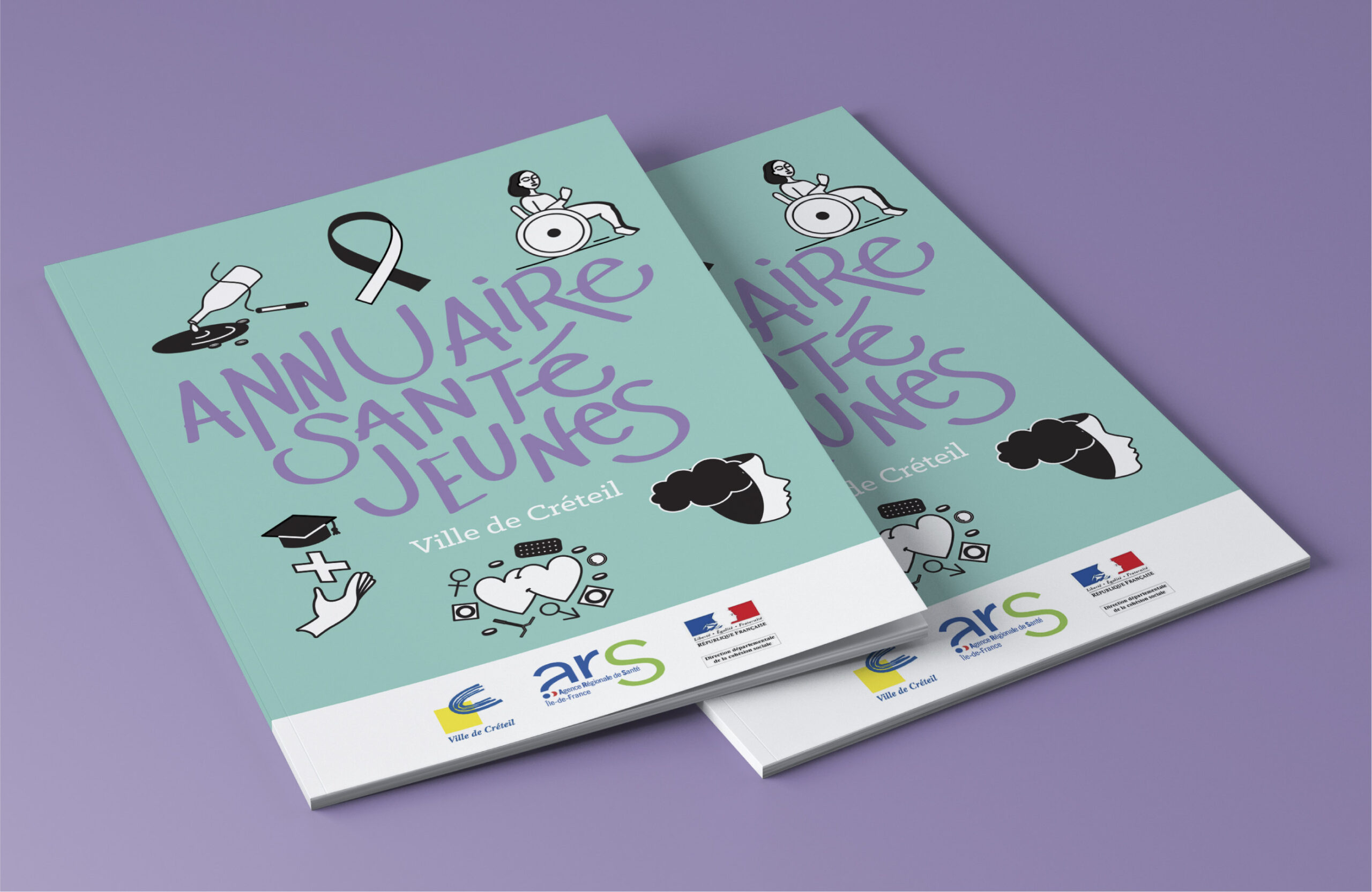 Création de supports de communication imprimés destinés à renseigner le public jeune sur des sujets de santé publique, en présentant les différentes associations santé de la ville de Créteil.